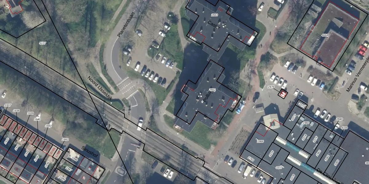 Het perceel waarop Pollux 12 staat heeft een oppervlakte van 630 m². Dit is een groot perceel. De perceeloppervlakte wordt geregistreerd door het Kadaster. Gedetailleerde informatie over de maten van dit perceel kunt u vinden in het rapport Kadastrale kaart met maatvoering van Pollux 12.