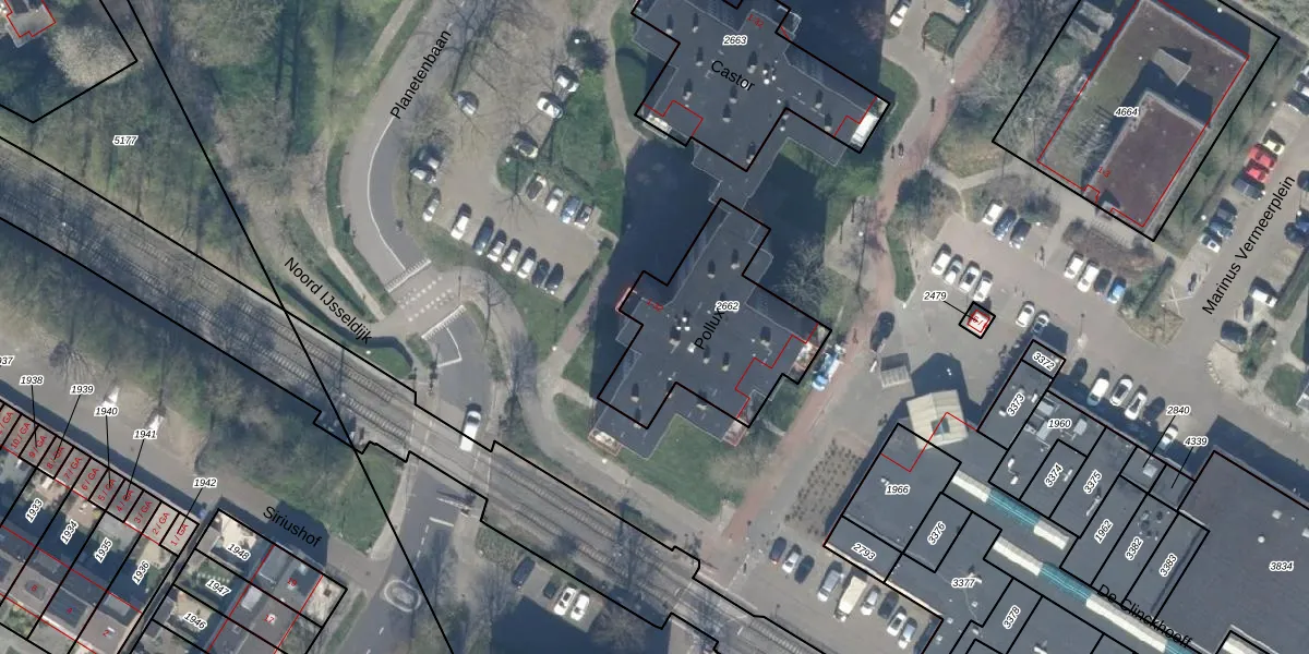 Het perceel waarop Pollux 16 staat heeft een oppervlakte van 630 m². Dit is een groot perceel. De perceeloppervlakte wordt geregistreerd door het Kadaster. Gedetailleerde informatie over de maten van dit perceel kunt u vinden in het rapport Kadastrale kaart met maatvoering van Pollux 16.