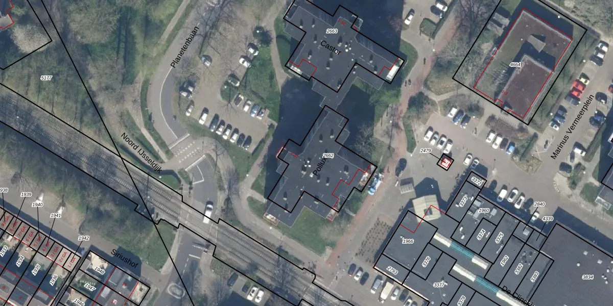 Het perceel waarop Pollux 19 staat heeft een oppervlakte van 630 m². Dit is een groot perceel. De perceeloppervlakte wordt geregistreerd door het Kadaster. Gedetailleerde informatie over de maten van dit perceel kunt u vinden in het rapport Kadastrale kaart met maatvoering van Pollux 19.