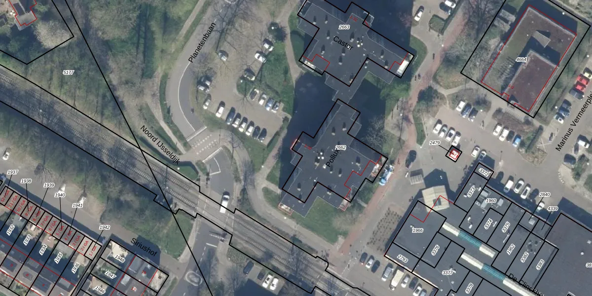 Het perceel waarop Pollux 27 staat heeft een oppervlakte van 630 m². Dit is een groot perceel. De perceeloppervlakte wordt geregistreerd door het Kadaster. Gedetailleerde informatie over de maten van dit perceel kunt u vinden in het rapport Kadastrale kaart met maatvoering van Pollux 27.