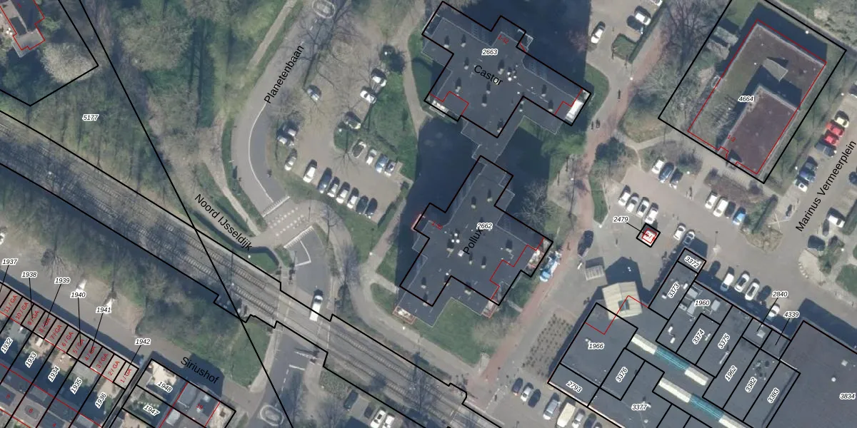 Het perceel waarop Pollux 3 staat heeft een oppervlakte van 630 m². Dit is een groot perceel. De perceeloppervlakte wordt geregistreerd door het Kadaster. Gedetailleerde informatie over de maten van dit perceel kunt u vinden in het rapport Kadastrale kaart met maatvoering van Pollux 3.