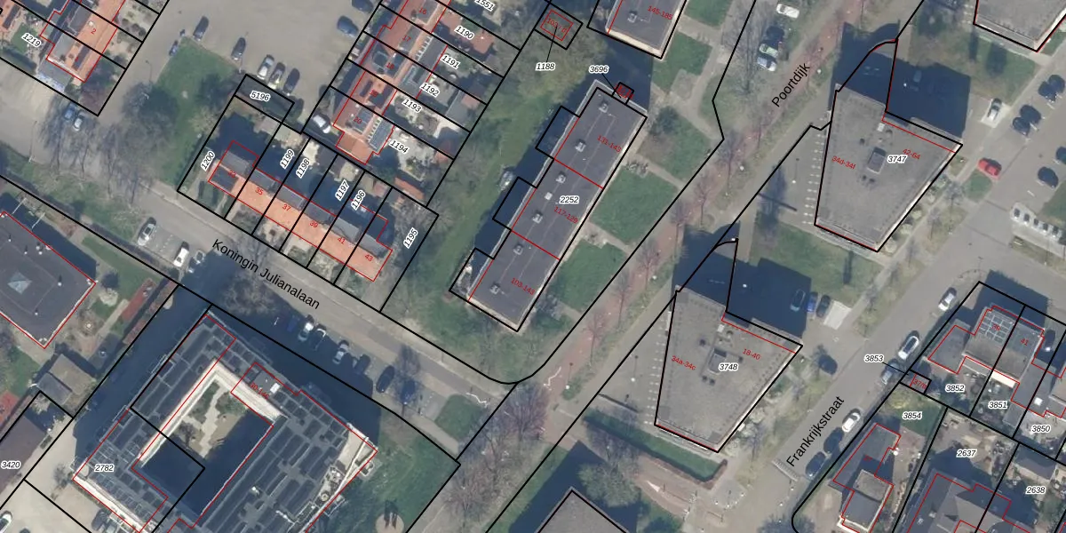 Het perceel waarop Poortdijk 111 staat heeft een oppervlakte van 633 m². Dit is een groot perceel. De perceeloppervlakte wordt geregistreerd door het Kadaster. Gedetailleerde informatie over de maten van dit perceel kunt u vinden in het rapport Kadastrale kaart met maatvoering van Poortdijk 111.