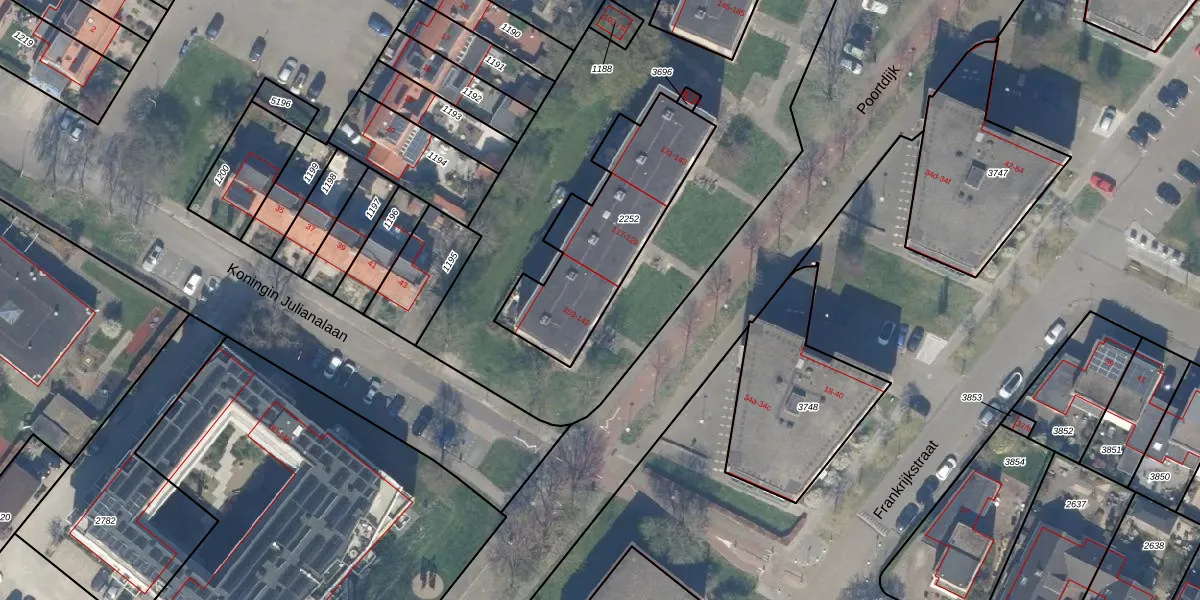 Het perceel waarop Poortdijk 113 staat heeft een oppervlakte van 633 m². Dit is een groot perceel. De perceeloppervlakte wordt geregistreerd door het Kadaster. Gedetailleerde informatie over de maten van dit perceel kunt u vinden in het rapport Kadastrale kaart met maatvoering van Poortdijk 113.