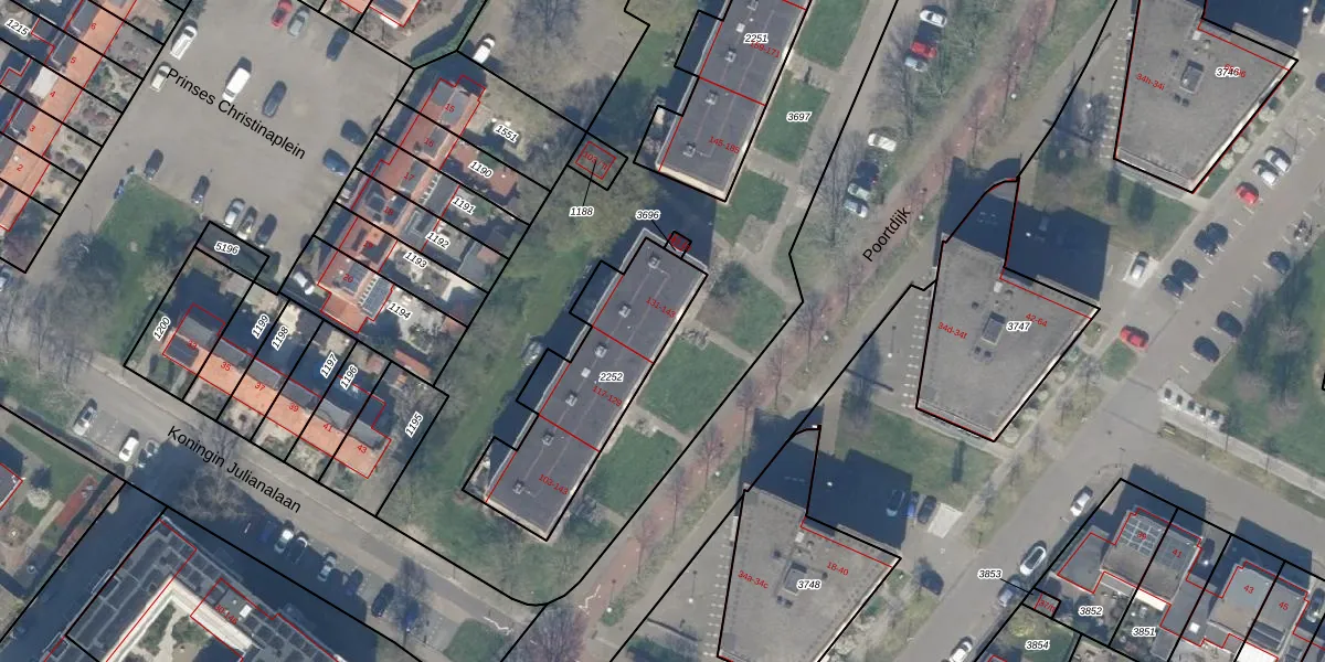 Het perceel waarop Poortdijk 131 staat heeft een oppervlakte van 633 m². Dit is een groot perceel. De perceeloppervlakte wordt geregistreerd door het Kadaster. Gedetailleerde informatie over de maten van dit perceel kunt u vinden in het rapport Kadastrale kaart met maatvoering van Poortdijk 131.