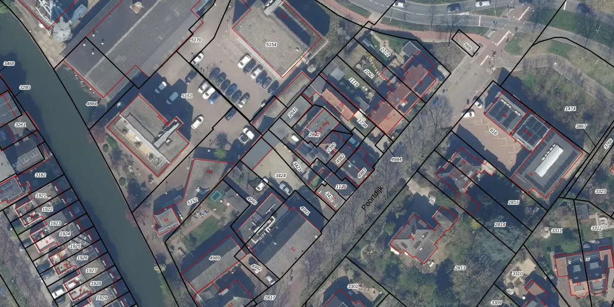 Het perceel waarop Poortdijk 21 staat heeft een oppervlakte van 158 m². Dit is een middelgroot perceel. De perceeloppervlakte wordt geregistreerd door het Kadaster. Gedetailleerde informatie over de maten van dit perceel kunt u vinden in het rapport Kadastrale kaart met maatvoering van Poortdijk 21.