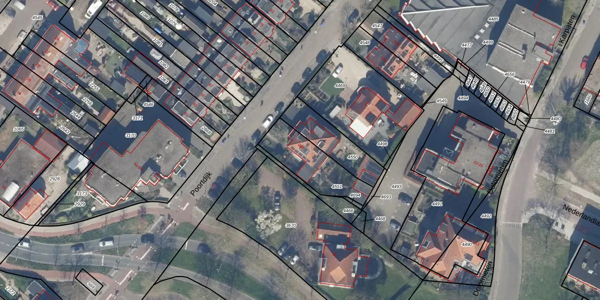 Het perceel waarop Poortdijk 30-b staat heeft een oppervlakte van 413 m². Dit is een groot perceel. De perceeloppervlakte wordt geregistreerd door het Kadaster. Gedetailleerde informatie over de maten van dit perceel kunt u vinden in het rapport Kadastrale kaart met maatvoering van Poortdijk 30-b.