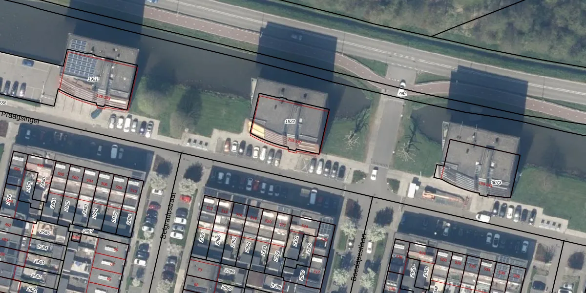 Het perceel waarop Praagsingel 191 staat heeft een oppervlakte van 380 m². Dit is een groot perceel. De perceeloppervlakte wordt geregistreerd door het Kadaster. Gedetailleerde informatie over de maten van dit perceel kunt u vinden in het rapport Kadastrale kaart met maatvoering van Praagsingel 191.