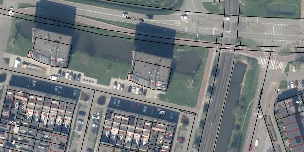 Het perceel waarop Praagsingel 265 staat heeft een oppervlakte van 387 m². Dit is een groot perceel. De perceeloppervlakte wordt geregistreerd door het Kadaster. Gedetailleerde informatie over de maten van dit perceel kunt u vinden in het rapport Kadastrale kaart met maatvoering van Praagsingel 265.