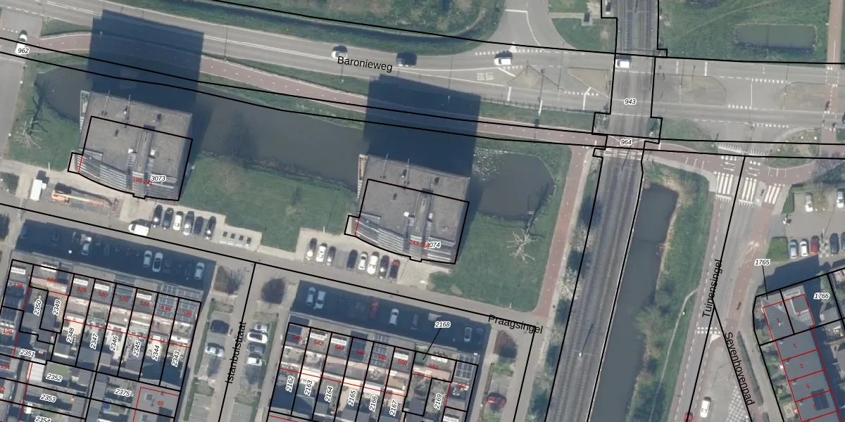 Het perceel waarop Praagsingel 267 staat heeft een oppervlakte van 387 m². Dit is een groot perceel. De perceeloppervlakte wordt geregistreerd door het Kadaster. Gedetailleerde informatie over de maten van dit perceel kunt u vinden in het rapport Kadastrale kaart met maatvoering van Praagsingel 267.