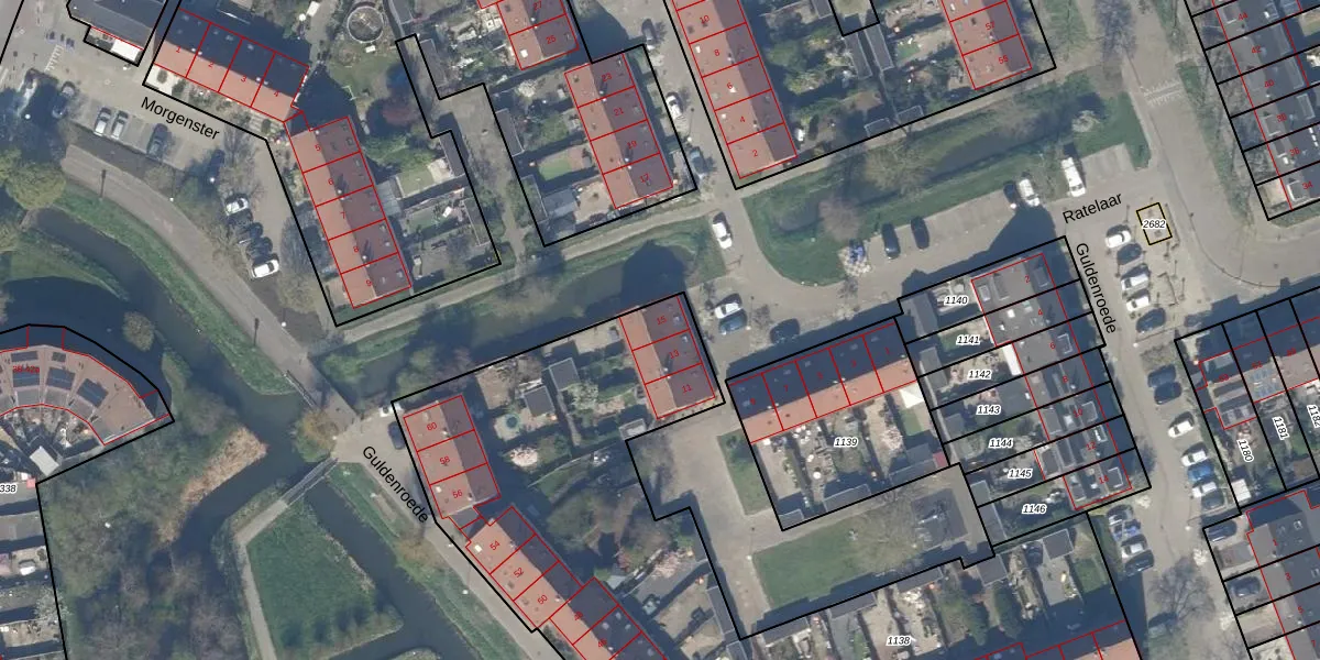 Het perceel waarop Ratelaar 15 staat heeft een oppervlakte van 3850 m². Dit is een zeer groot perceel. De perceeloppervlakte wordt geregistreerd door het Kadaster. Gedetailleerde informatie over de maten van dit perceel kunt u vinden in het rapport Kadastrale kaart met maatvoering van Ratelaar 15.