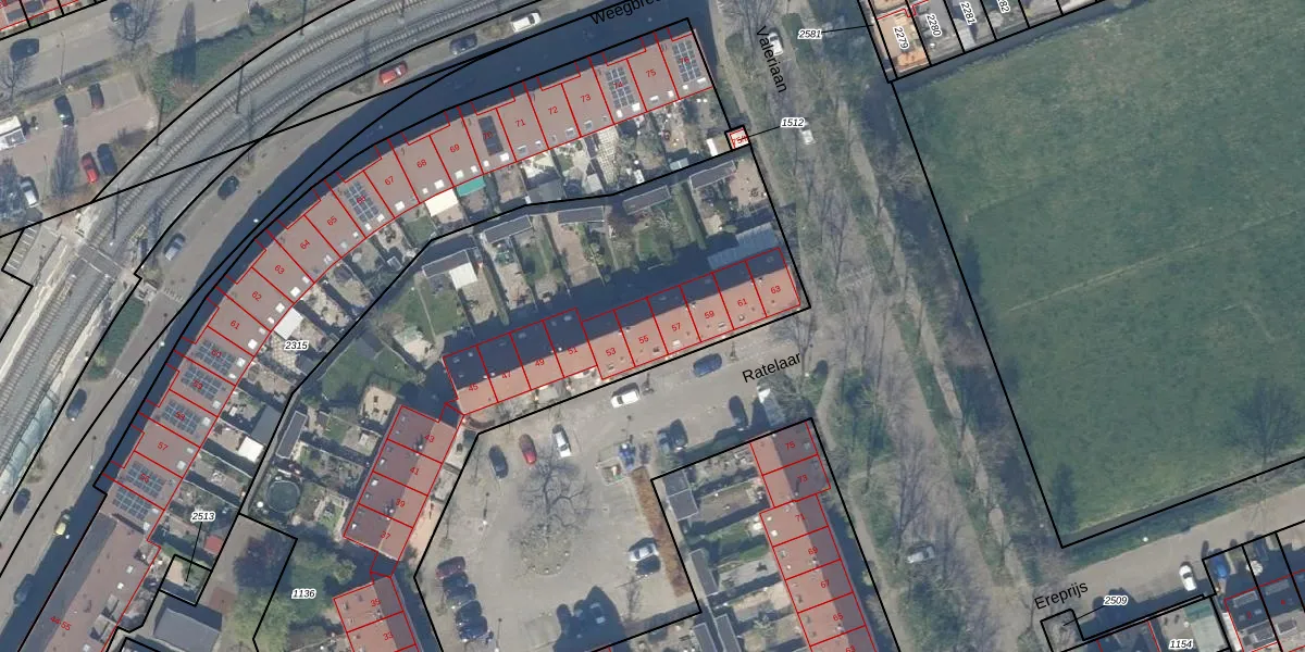 Het perceel waarop Ratelaar 55 staat heeft een oppervlakte van 5750 m². Dit is een zeer groot perceel. De perceeloppervlakte wordt geregistreerd door het Kadaster. Gedetailleerde informatie over de maten van dit perceel kunt u vinden in het rapport Kadastrale kaart met maatvoering van Ratelaar 55.