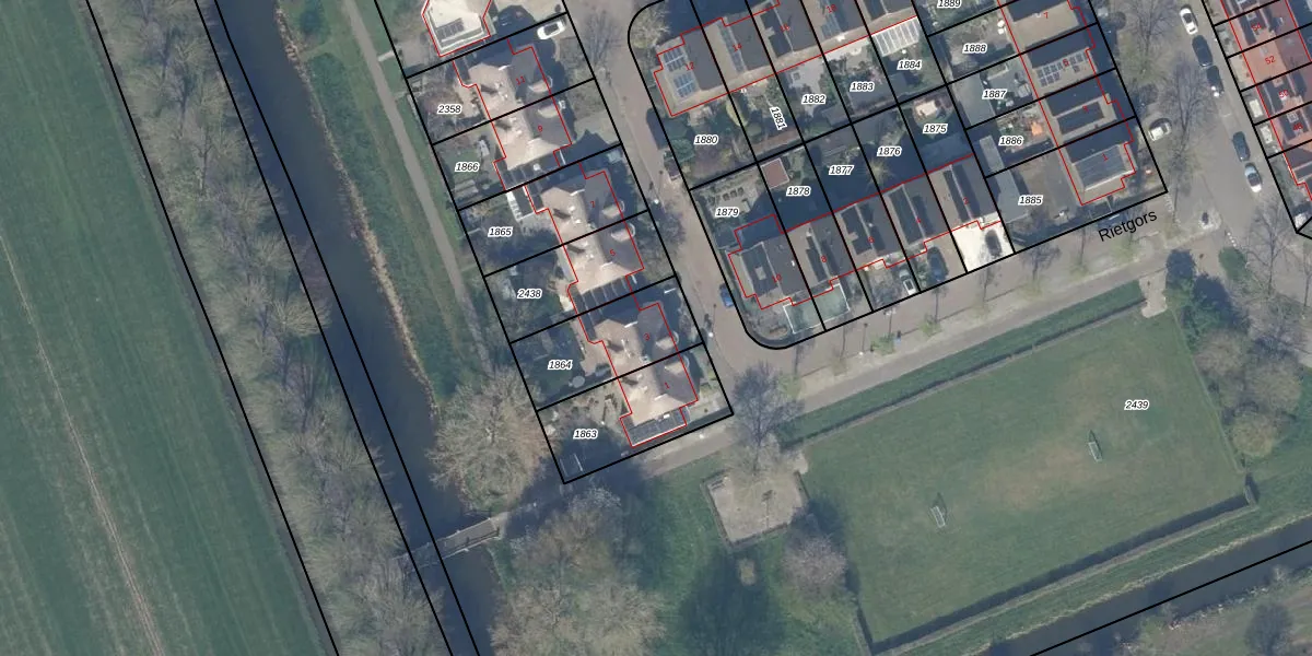 Het perceel waarop Rietgors 3 staat heeft een oppervlakte van 299 m². Dit is een middelgroot perceel. De perceeloppervlakte wordt geregistreerd door het Kadaster. Gedetailleerde informatie over de maten van dit perceel kunt u vinden in het rapport Kadastrale kaart met maatvoering van Rietgors 3.