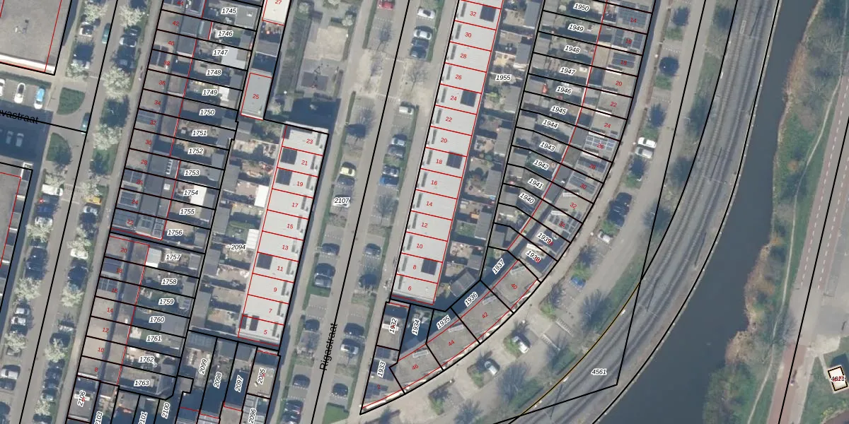 Het perceel waarop Rigastraat 14 staat heeft een oppervlakte van 1923 m². Dit is een zeer groot perceel. De perceeloppervlakte wordt geregistreerd door het Kadaster. Gedetailleerde informatie over de maten van dit perceel kunt u vinden in het rapport Kadastrale kaart met maatvoering van Rigastraat 14.