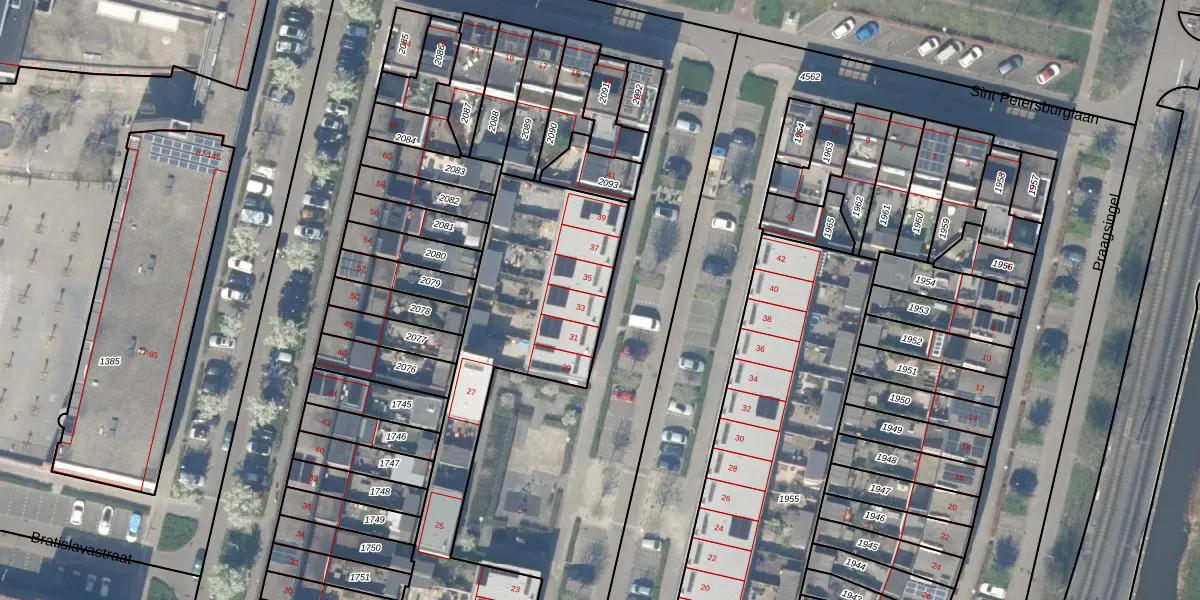 Het perceel waarop Rigastraat 33 staat heeft een oppervlakte van 2056 m². Dit is een zeer groot perceel. De perceeloppervlakte wordt geregistreerd door het Kadaster. Gedetailleerde informatie over de maten van dit perceel kunt u vinden in het rapport Kadastrale kaart met maatvoering van Rigastraat 33.
