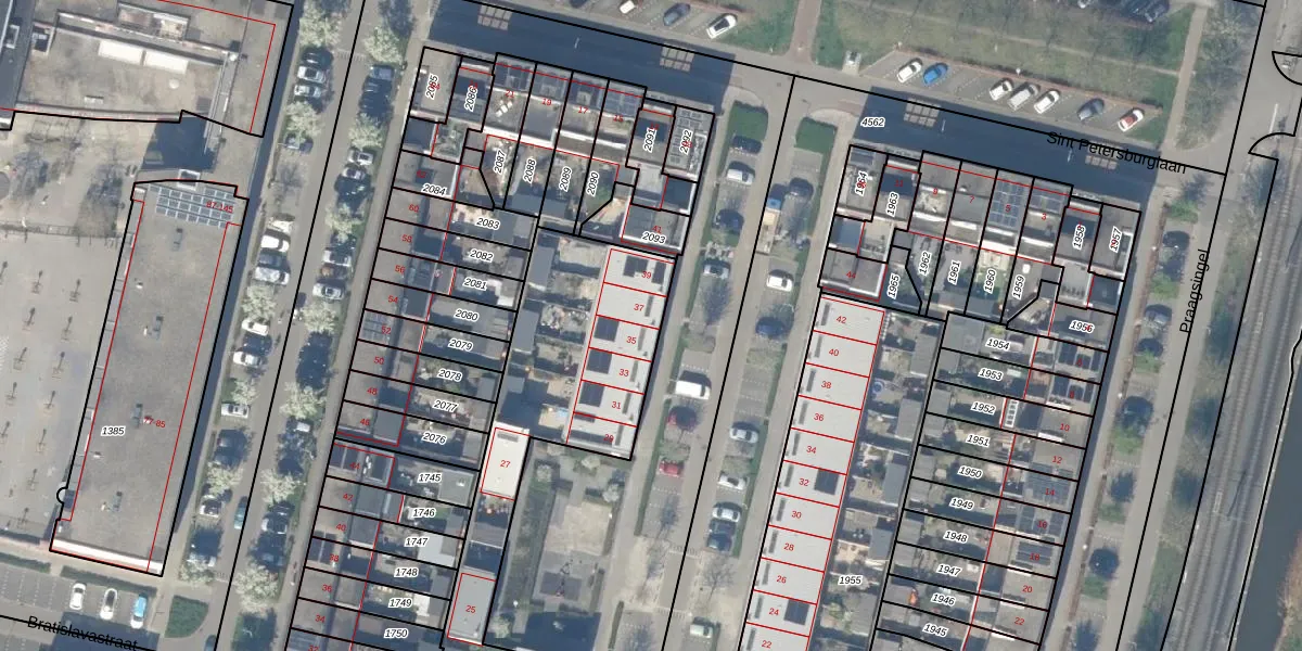 Het perceel waarop Rigastraat 37 staat heeft een oppervlakte van 2056 m². Dit is een zeer groot perceel. De perceeloppervlakte wordt geregistreerd door het Kadaster. Gedetailleerde informatie over de maten van dit perceel kunt u vinden in het rapport Kadastrale kaart met maatvoering van Rigastraat 37.