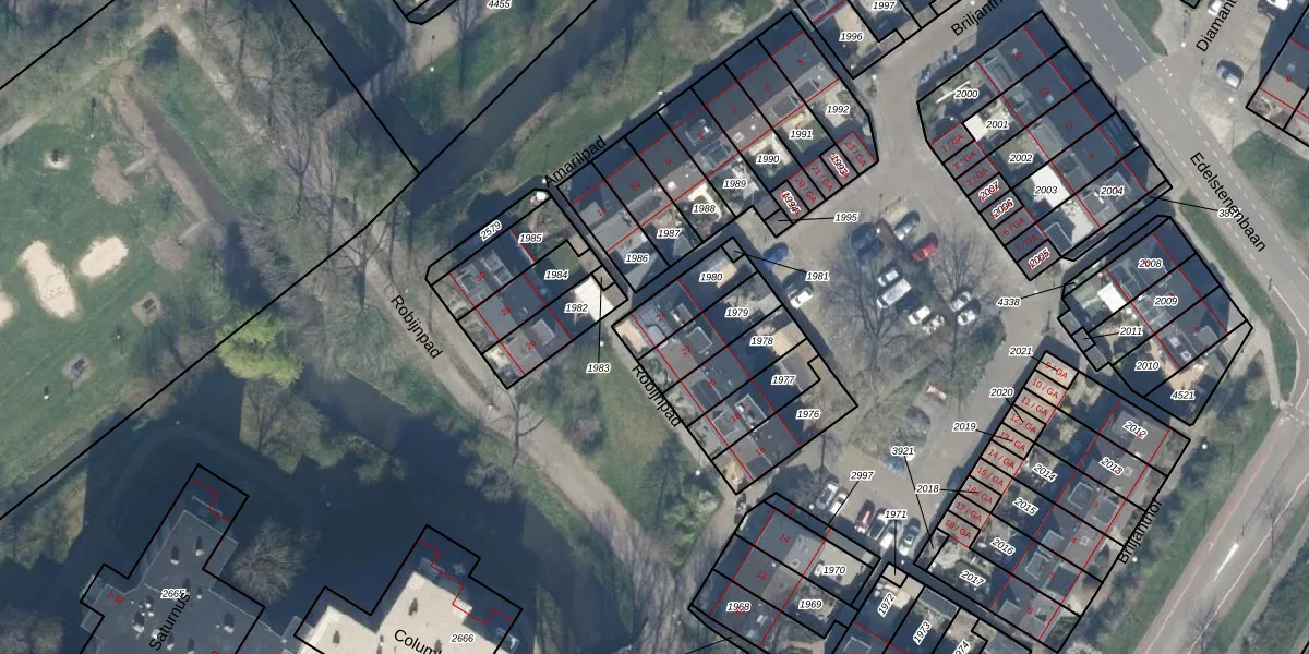 Het perceel waarop Robijnpad 24 staat heeft een oppervlakte van 143 m². Dit is een middelgroot perceel. De perceeloppervlakte wordt geregistreerd door het Kadaster. Gedetailleerde informatie over de maten van dit perceel kunt u vinden in het rapport Kadastrale kaart met maatvoering van Robijnpad 24.