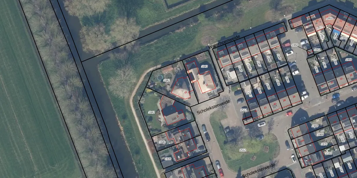 Het perceel waarop Scholeksterweide 10 staat heeft een oppervlakte van 423 m². Dit is een groot perceel. De perceeloppervlakte wordt geregistreerd door het Kadaster. Gedetailleerde informatie over de maten van dit perceel kunt u vinden in het rapport Kadastrale kaart met maatvoering van Scholeksterweide 10.