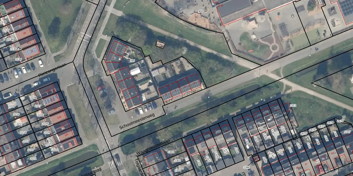 Schoolmeesterweg 9 is gelegen op kadastraal perceel ISS00G284. Deze kadastrale aanduiding is uniek en wordt gebruikt door het Kadaster om eigendomsrechten en andere zakelijke rechten vast te leggen. Het perceel maakt onderdeel uit van de kadastrale gemeente IJsselstein.