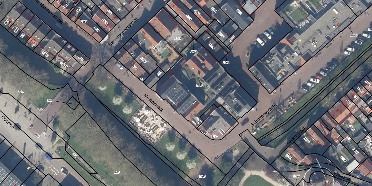 Het perceel waarop Schuttersgracht 22-g staat heeft een oppervlakte van 1325 m². Dit is een zeer groot perceel. De perceeloppervlakte wordt geregistreerd door het Kadaster. Gedetailleerde informatie over de maten van dit perceel kunt u vinden in het rapport Kadastrale kaart met maatvoering van Schuttersgracht 22-g.