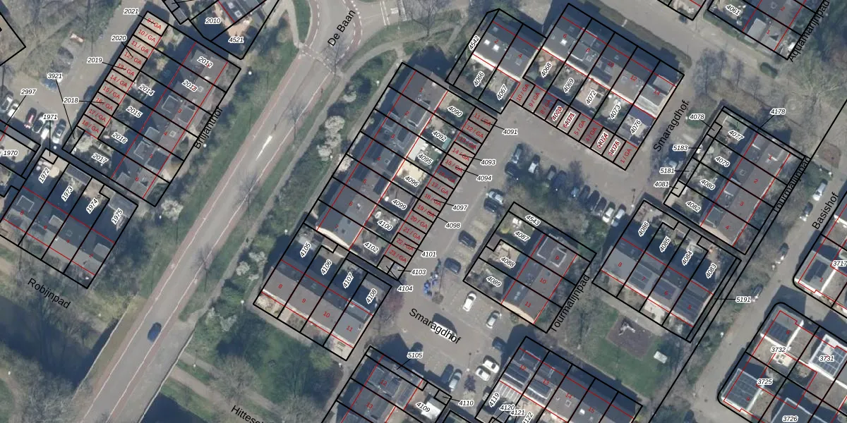 Het perceel waarop Smaragdhof 19-GA staat heeft een oppervlakte van 19 m². Dit is een klein perceel. De perceeloppervlakte wordt geregistreerd door het Kadaster. Gedetailleerde informatie over de maten van dit perceel kunt u vinden in het rapport Kadastrale kaart met maatvoering van Smaragdhof 19-GA.