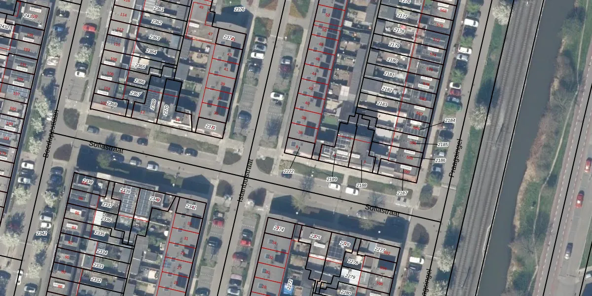 Het perceel waarop Sofiastraat 6 staat heeft een oppervlakte van 51 m². Dit is een klein perceel. De perceeloppervlakte wordt geregistreerd door het Kadaster. Gedetailleerde informatie over de maten van dit perceel kunt u vinden in het rapport Kadastrale kaart met maatvoering van Sofiastraat 6.
