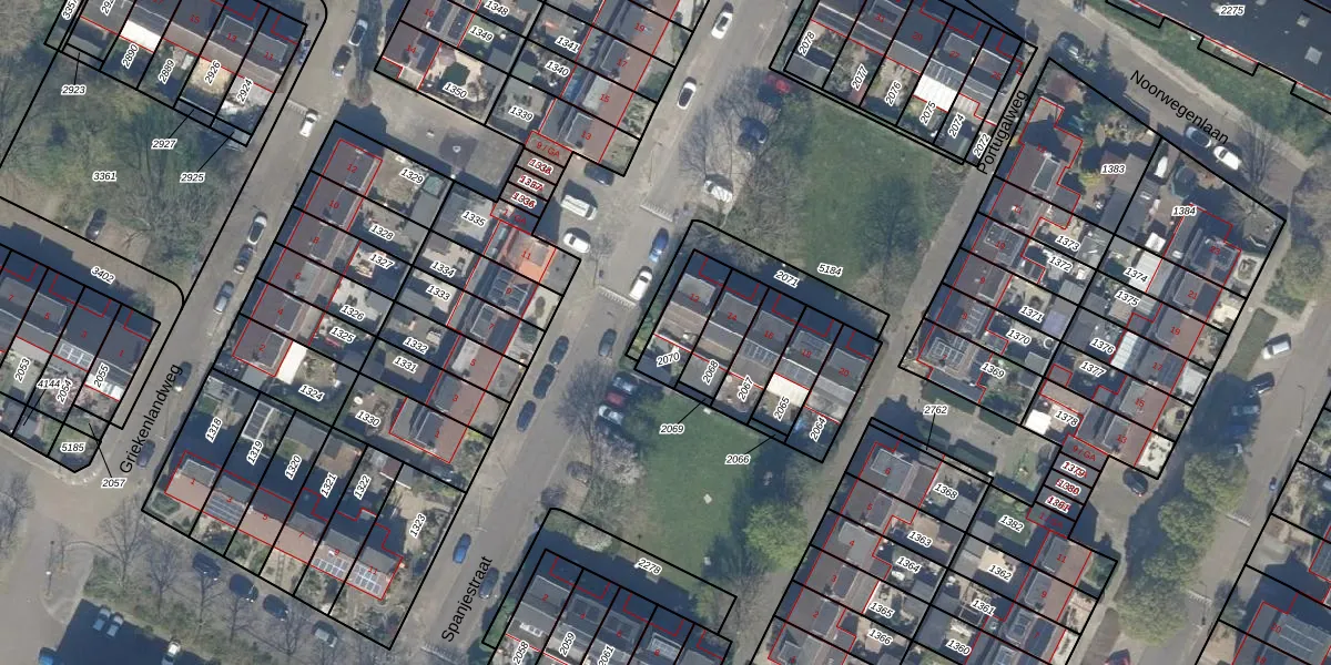 Gebruik de zoekbalk of klik op een perceel voor informatie over de adressen binnen dit perceel.