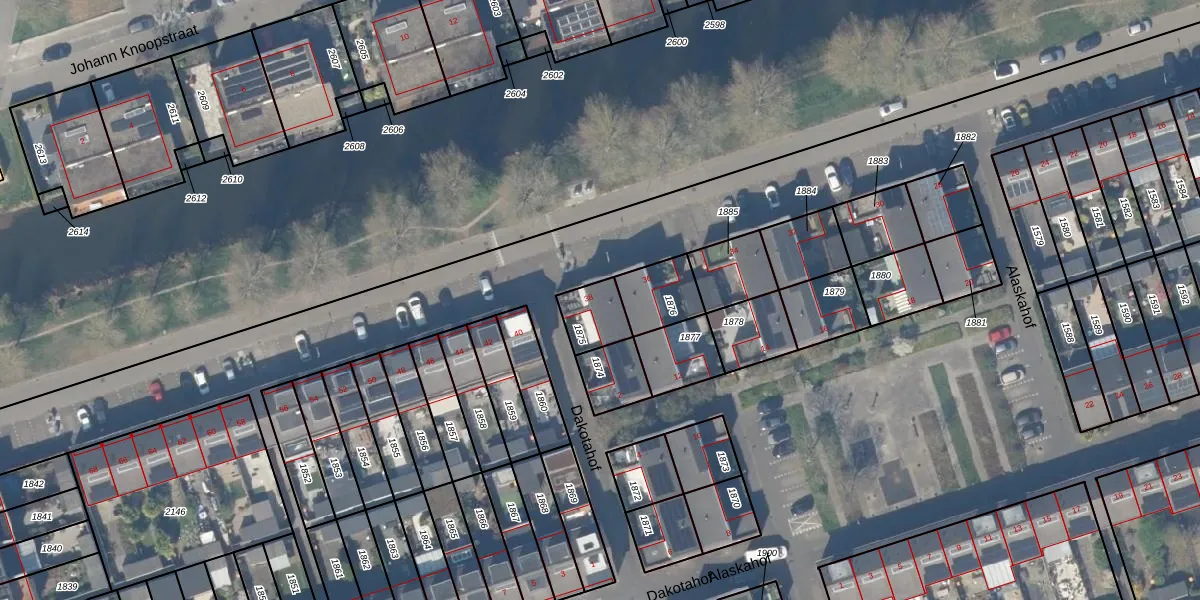 Gebruik de zoekbalk of klik op een perceel voor informatie over de adressen binnen dit perceel.