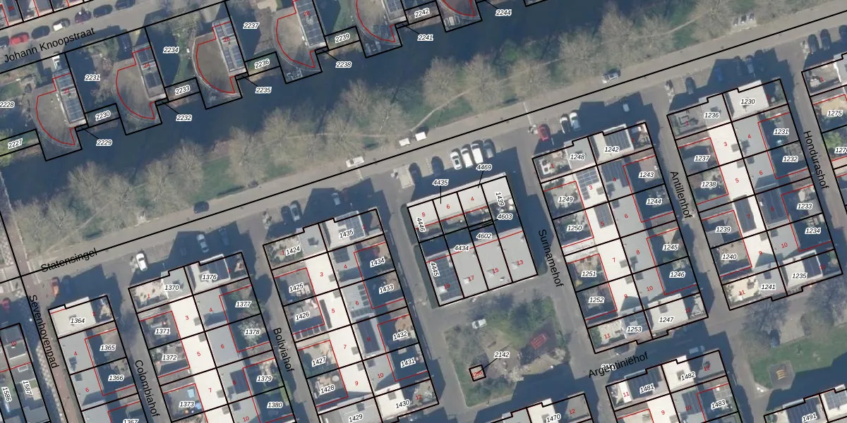 Het perceel waarop Statensingel 8 staat heeft een oppervlakte van 55 m². Dit is een klein perceel. De perceeloppervlakte wordt geregistreerd door het Kadaster. Gedetailleerde informatie over de maten van dit perceel kunt u vinden in het rapport Kadastrale kaart met maatvoering van Statensingel 8.
