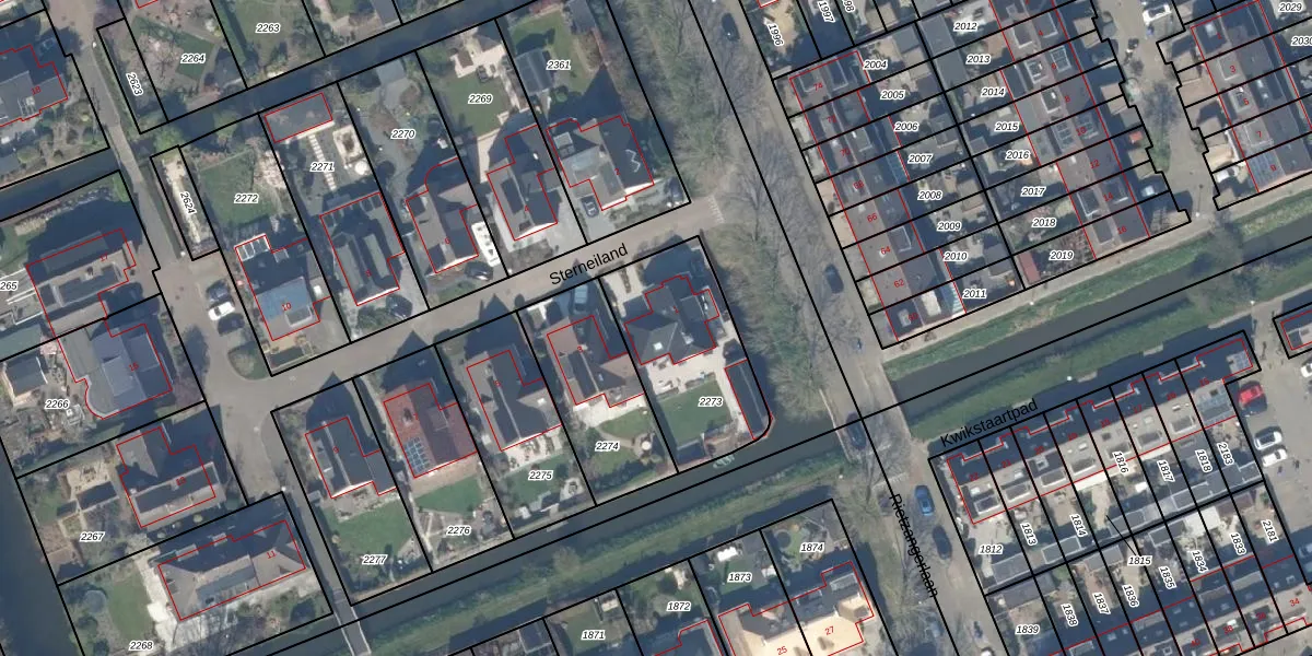 Het perceel waarop Sterneiland 1 staat heeft een oppervlakte van 535 m². Dit is een groot perceel. De perceeloppervlakte wordt geregistreerd door het Kadaster. Gedetailleerde informatie over de maten van dit perceel kunt u vinden in het rapport Kadastrale kaart met maatvoering van Sterneiland 1.