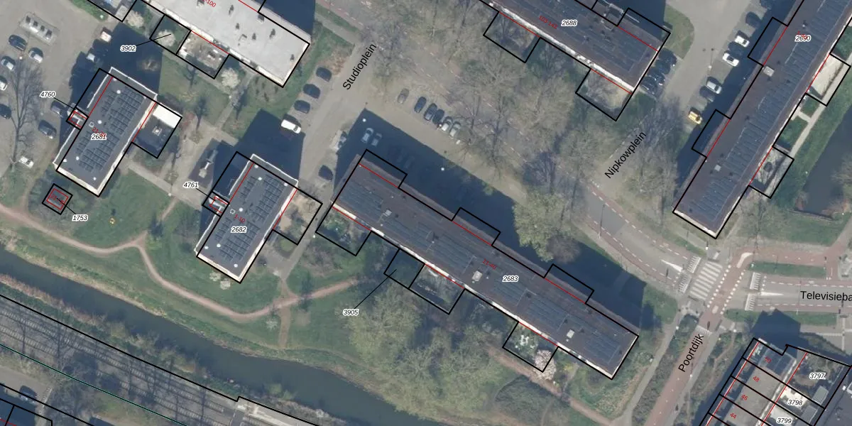 Het perceel waarop Studioplein 12 staat heeft een oppervlakte van 1282 m². Dit is een zeer groot perceel. De perceeloppervlakte wordt geregistreerd door het Kadaster. Gedetailleerde informatie over de maten van dit perceel kunt u vinden in het rapport Kadastrale kaart met maatvoering van Studioplein 12.