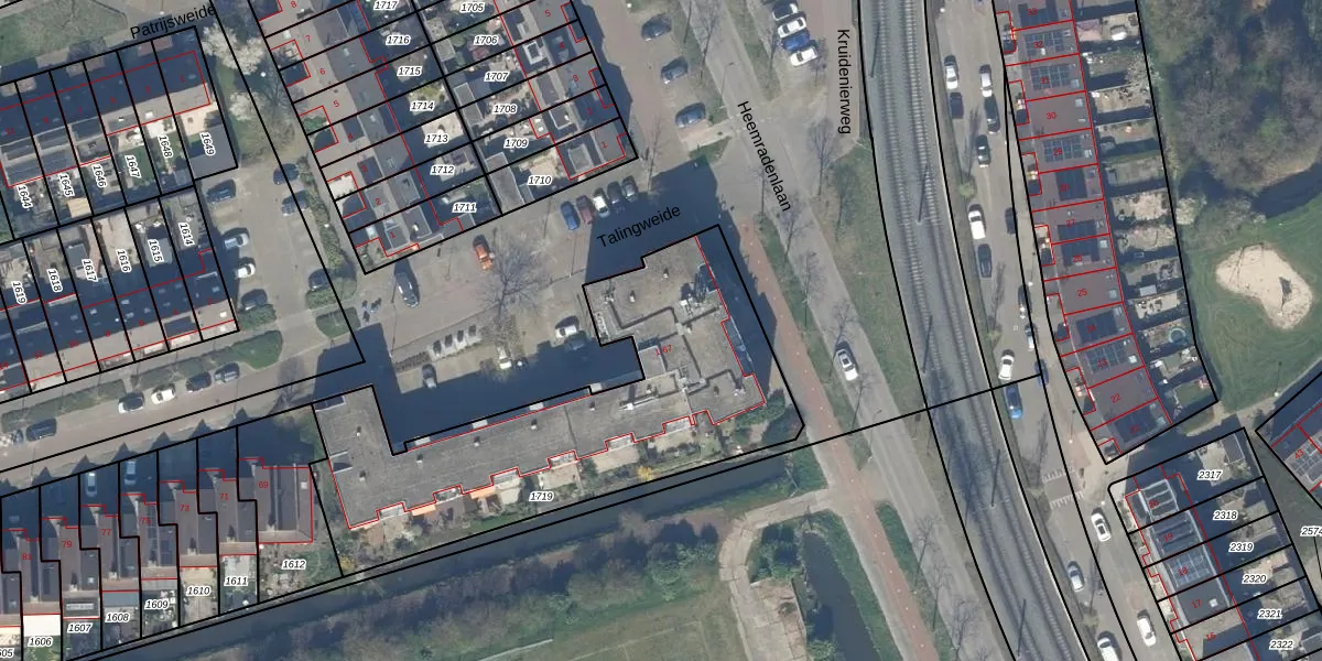 Het perceel waarop Talingweide 19 staat heeft een oppervlakte van 1615 m². Dit is een zeer groot perceel. De perceeloppervlakte wordt geregistreerd door het Kadaster. Gedetailleerde informatie over de maten van dit perceel kunt u vinden in het rapport Kadastrale kaart met maatvoering van Talingweide 19.