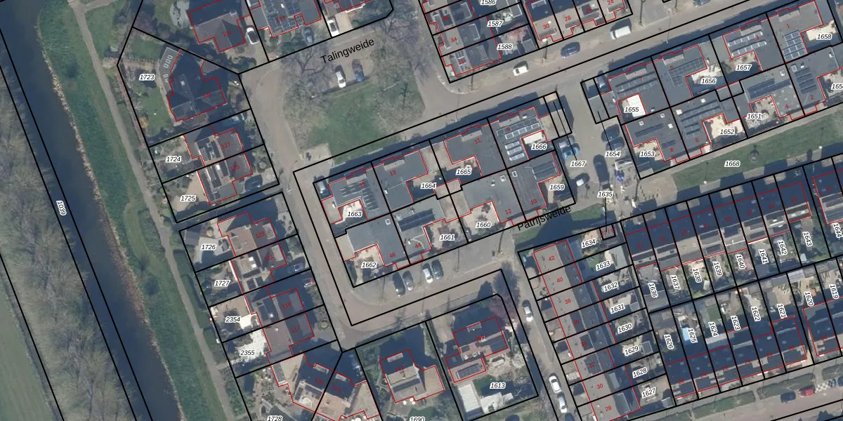 Het perceel waarop Talingweide 44 staat heeft een oppervlakte van 194 m². Dit is een middelgroot perceel. De perceeloppervlakte wordt geregistreerd door het Kadaster. Gedetailleerde informatie over de maten van dit perceel kunt u vinden in het rapport Kadastrale kaart met maatvoering van Talingweide 44.