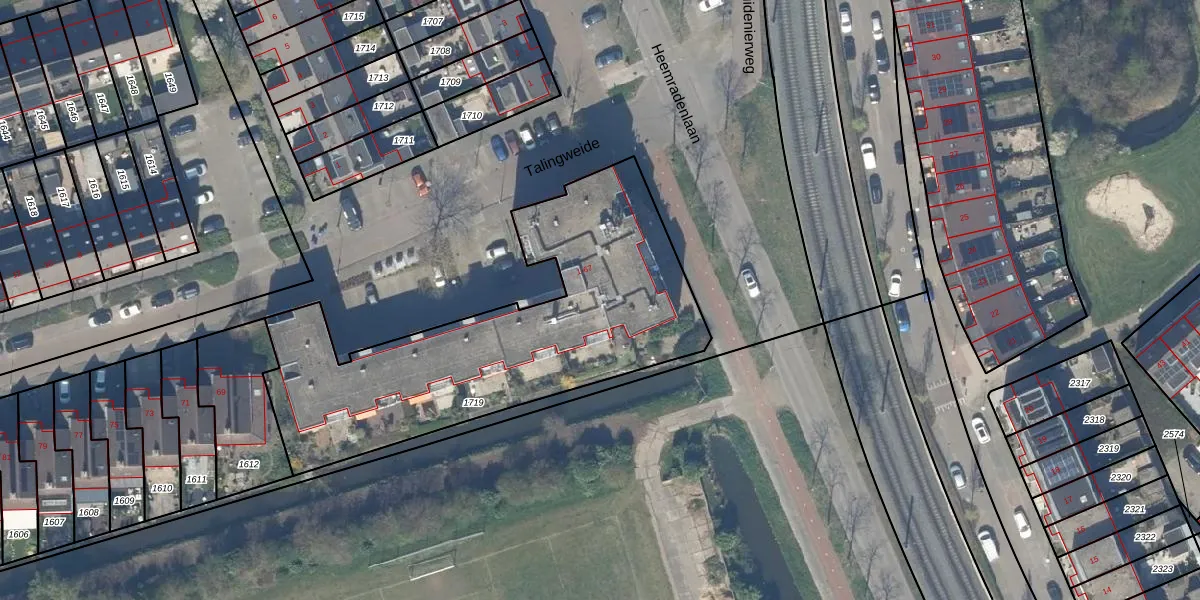 Het perceel waarop Talingweide 47 staat heeft een oppervlakte van 1615 m². Dit is een zeer groot perceel. De perceeloppervlakte wordt geregistreerd door het Kadaster. Gedetailleerde informatie over de maten van dit perceel kunt u vinden in het rapport Kadastrale kaart met maatvoering van Talingweide 47.