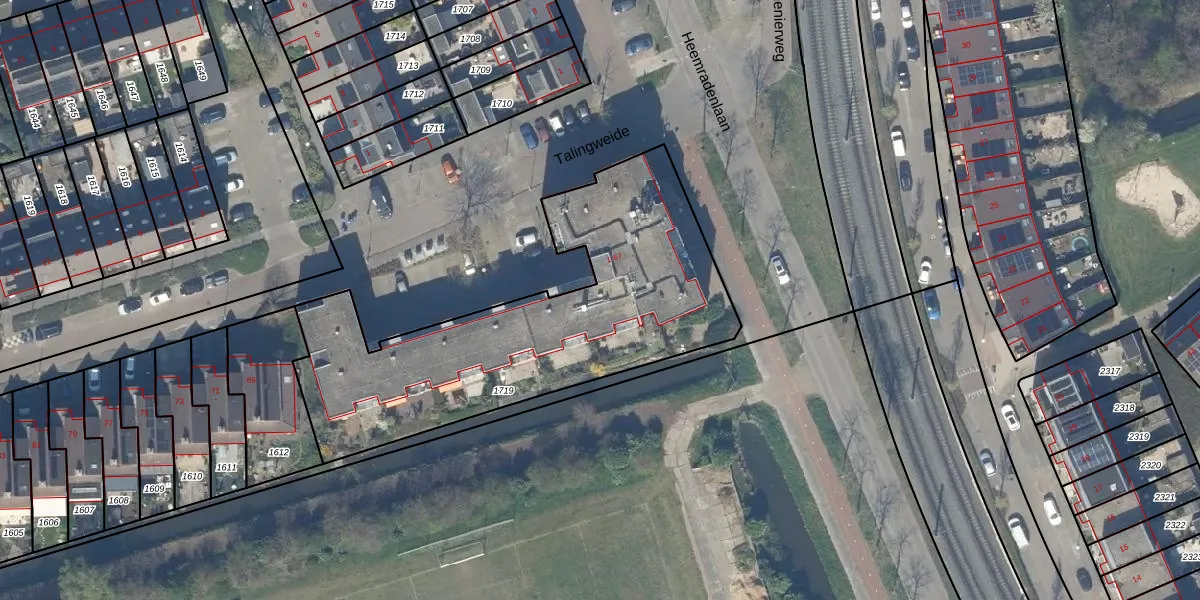 Het perceel waarop Talingweide 51 staat heeft een oppervlakte van 1615 m². Dit is een zeer groot perceel. De perceeloppervlakte wordt geregistreerd door het Kadaster. Gedetailleerde informatie over de maten van dit perceel kunt u vinden in het rapport Kadastrale kaart met maatvoering van Talingweide 51.