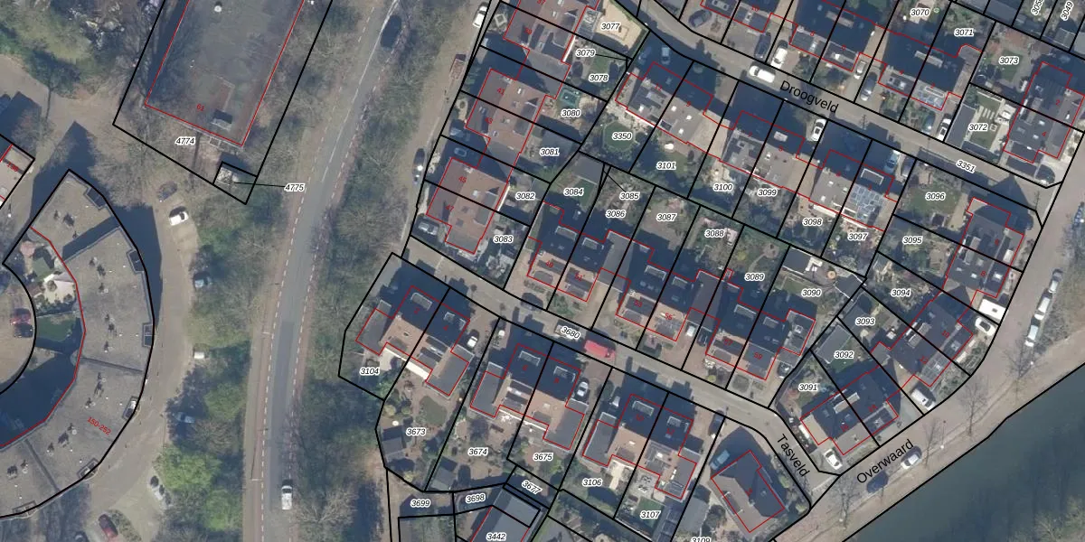 Het perceel waarop Tasveld 49 staat heeft een oppervlakte van 250 m². Dit is een middelgroot perceel. De perceeloppervlakte wordt geregistreerd door het Kadaster. Gedetailleerde informatie over de maten van dit perceel kunt u vinden in het rapport Kadastrale kaart met maatvoering van Tasveld 49.
