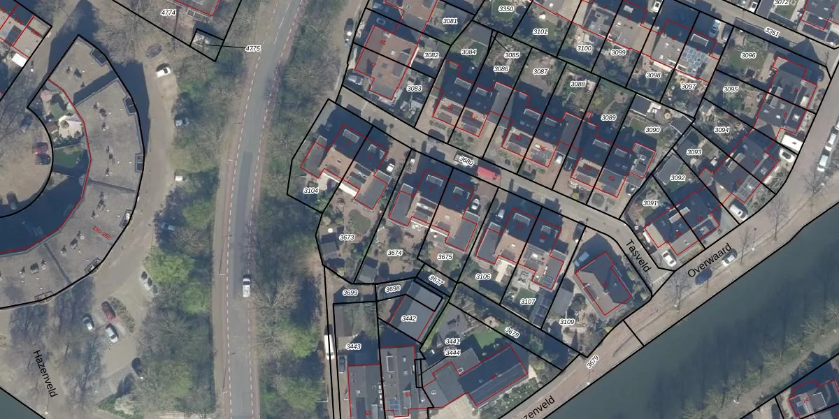 Het perceel waarop Tasveld 6 staat heeft een oppervlakte van 370 m². Dit is een groot perceel. De perceeloppervlakte wordt geregistreerd door het Kadaster. Gedetailleerde informatie over de maten van dit perceel kunt u vinden in het rapport Kadastrale kaart met maatvoering van Tasveld 6.