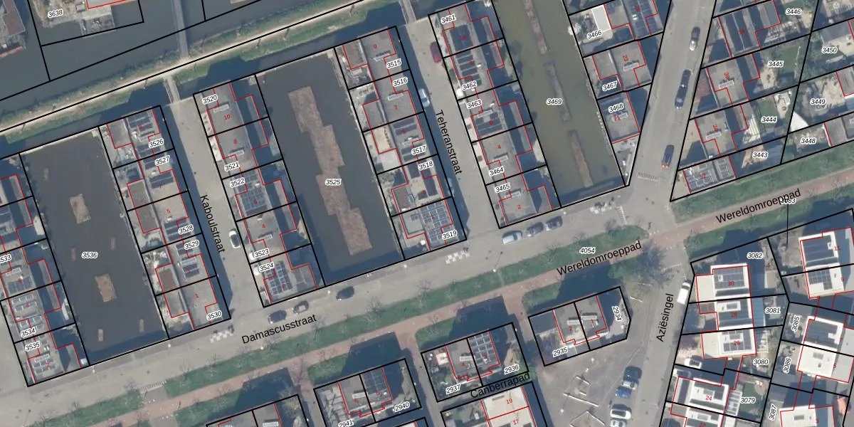 Het perceel waarop Teheranstraat 1 staat heeft een oppervlakte van 162 m². Dit is een middelgroot perceel. De perceeloppervlakte wordt geregistreerd door het Kadaster. Gedetailleerde informatie over de maten van dit perceel kunt u vinden in het rapport Kadastrale kaart met maatvoering van Teheranstraat 1.