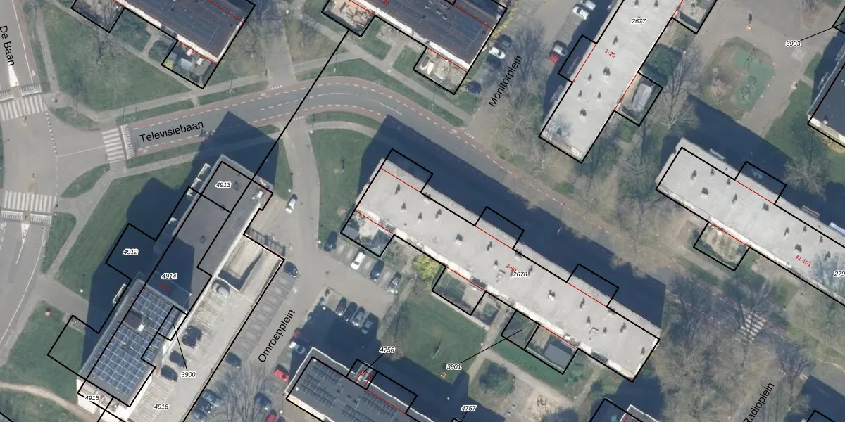 Het perceel waarop Televisiebaan 18 staat heeft een oppervlakte van 1313 m². Dit is een zeer groot perceel. De perceeloppervlakte wordt geregistreerd door het Kadaster. Gedetailleerde informatie over de maten van dit perceel kunt u vinden in het rapport Kadastrale kaart met maatvoering van Televisiebaan 18.