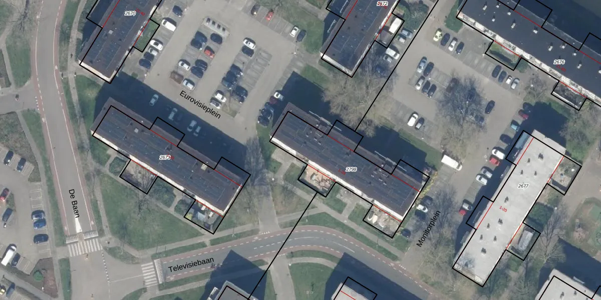 Het perceel waarop Televisiebaan 3 staat heeft een oppervlakte van 881 m². Dit is een groot perceel. De perceeloppervlakte wordt geregistreerd door het Kadaster. Gedetailleerde informatie over de maten van dit perceel kunt u vinden in het rapport Kadastrale kaart met maatvoering van Televisiebaan 3.