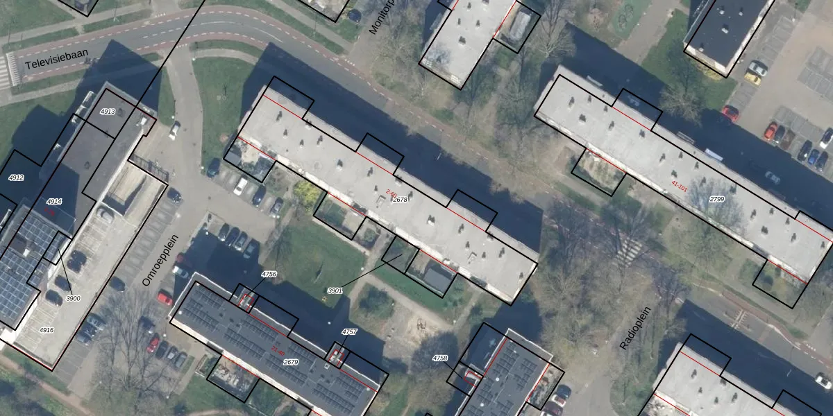 Het perceel waarop Televisiebaan 36 staat heeft een oppervlakte van 1313 m². Dit is een zeer groot perceel. De perceeloppervlakte wordt geregistreerd door het Kadaster. Gedetailleerde informatie over de maten van dit perceel kunt u vinden in het rapport Kadastrale kaart met maatvoering van Televisiebaan 36.