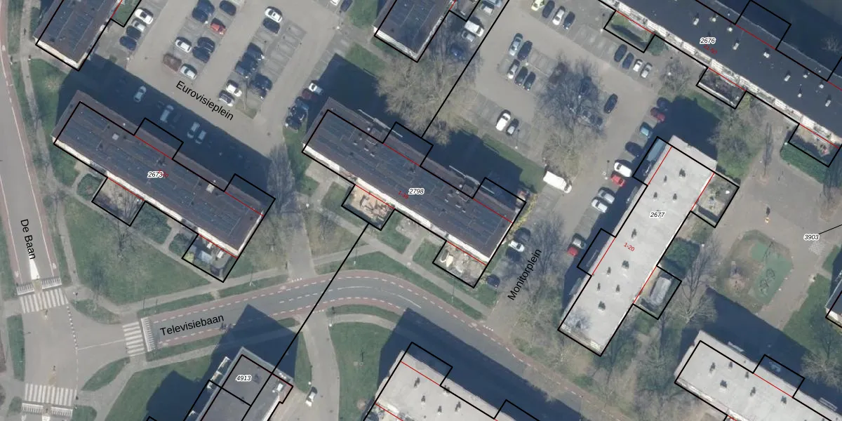 Het perceel waarop Televisiebaan 39 staat heeft een oppervlakte van 881 m². Dit is een groot perceel. De perceeloppervlakte wordt geregistreerd door het Kadaster. Gedetailleerde informatie over de maten van dit perceel kunt u vinden in het rapport Kadastrale kaart met maatvoering van Televisiebaan 39.