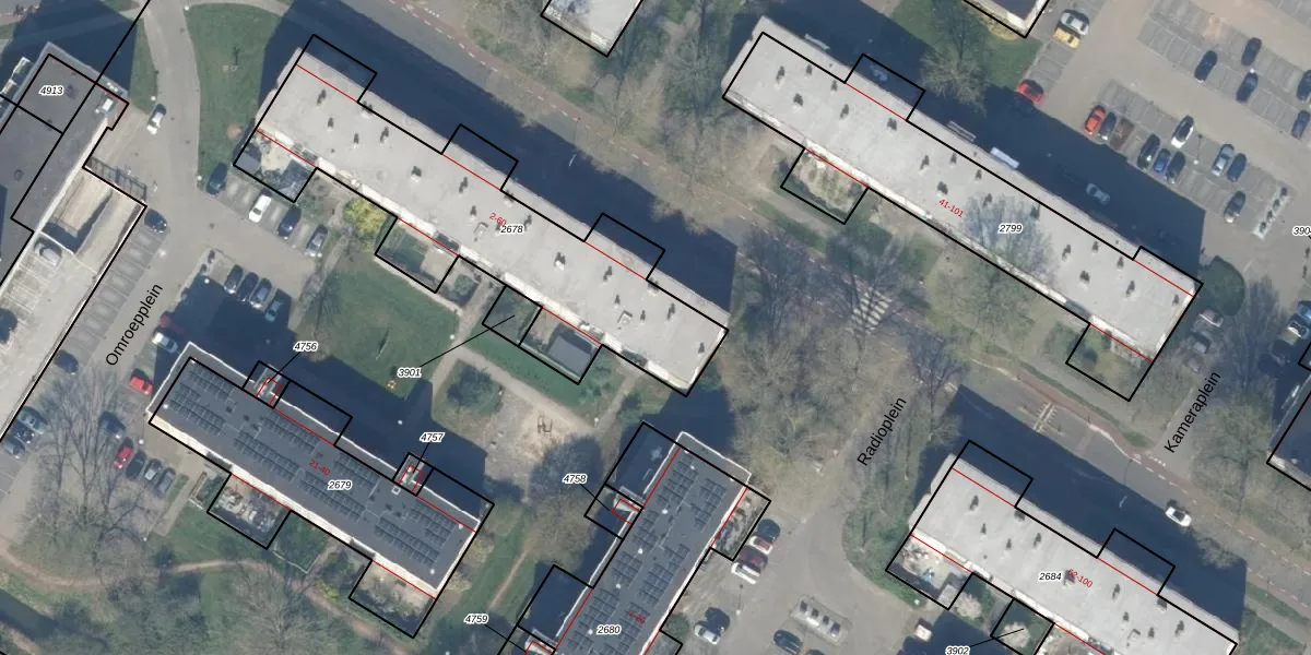 Het perceel waarop Televisiebaan 56 staat heeft een oppervlakte van 1313 m². Dit is een zeer groot perceel. De perceeloppervlakte wordt geregistreerd door het Kadaster. Gedetailleerde informatie over de maten van dit perceel kunt u vinden in het rapport Kadastrale kaart met maatvoering van Televisiebaan 56.