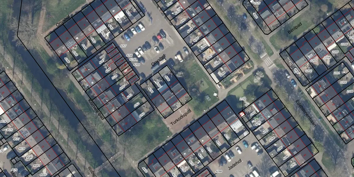 Het perceel waarop Turkooispad 2 staat heeft een oppervlakte van 155 m². Dit is een middelgroot perceel. De perceeloppervlakte wordt geregistreerd door het Kadaster. Gedetailleerde informatie over de maten van dit perceel kunt u vinden in het rapport Kadastrale kaart met maatvoering van Turkooispad 2.