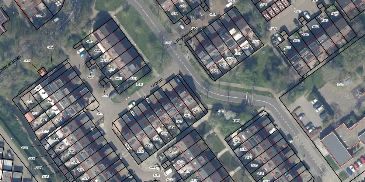 Het perceel waarop Uranus 30 staat heeft een oppervlakte van 150 m². Dit is een middelgroot perceel. De perceeloppervlakte wordt geregistreerd door het Kadaster. Gedetailleerde informatie over de maten van dit perceel kunt u vinden in het rapport Kadastrale kaart met maatvoering van Uranus 30.