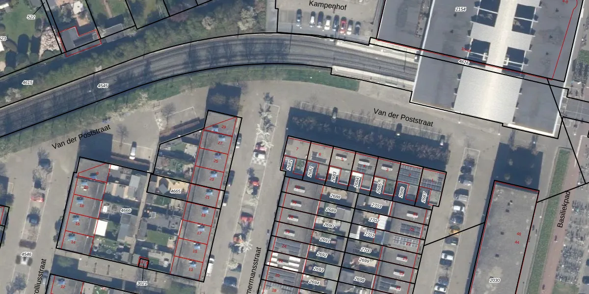Het perceel waarop Van der Poststraat 7 staat heeft een oppervlakte van 107 m². Dit is een middelgroot perceel. De perceeloppervlakte wordt geregistreerd door het Kadaster. Gedetailleerde informatie over de maten van dit perceel kunt u vinden in het rapport Kadastrale kaart met maatvoering van Van der Poststraat 7.