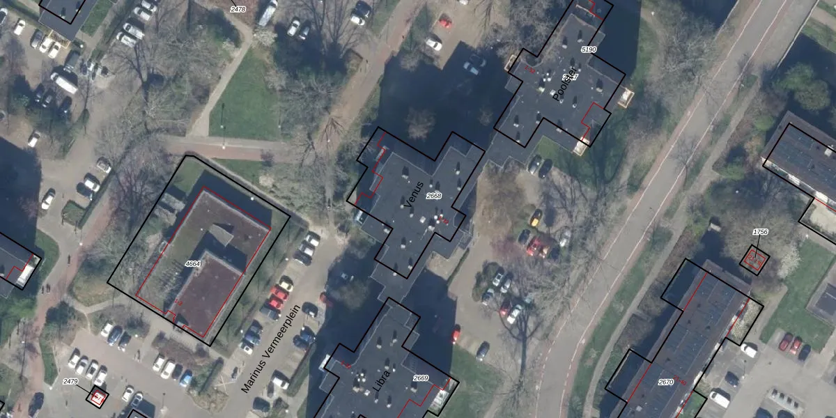 Het perceel waarop Venus 25 staat heeft een oppervlakte van 630 m². Dit is een groot perceel. De perceeloppervlakte wordt geregistreerd door het Kadaster. Gedetailleerde informatie over de maten van dit perceel kunt u vinden in het rapport Kadastrale kaart met maatvoering van Venus 25.