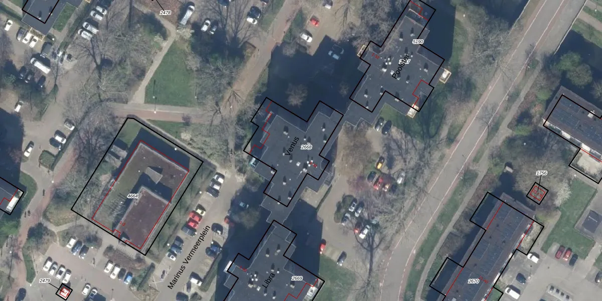 Het perceel waarop Venus 26 staat heeft een oppervlakte van 630 m². Dit is een groot perceel. De perceeloppervlakte wordt geregistreerd door het Kadaster. Gedetailleerde informatie over de maten van dit perceel kunt u vinden in het rapport Kadastrale kaart met maatvoering van Venus 26.