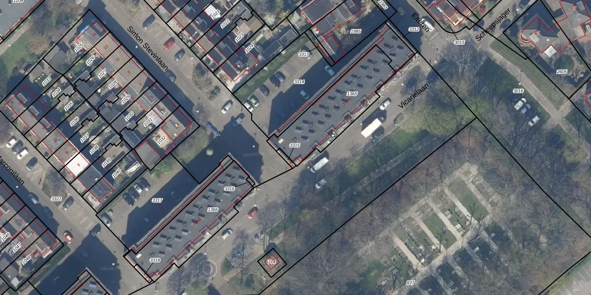 Het perceel waarop Vicarielaan 2-b staat heeft een oppervlakte van 625 m². Dit is een groot perceel. De perceeloppervlakte wordt geregistreerd door het Kadaster. Gedetailleerde informatie over de maten van dit perceel kunt u vinden in het rapport Kadastrale kaart met maatvoering van Vicarielaan 2-b.