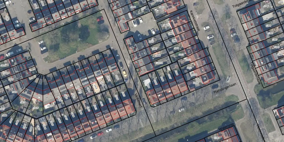 Gebruik de zoekbalk of klik op een perceel voor informatie over de adressen binnen dit perceel.