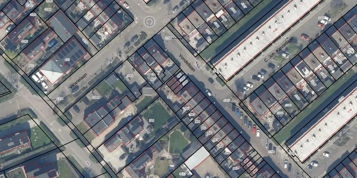 Het perceel waarop Vondellaan 9-GA staat heeft een oppervlakte van 31 m². Dit is een klein perceel. De perceeloppervlakte wordt geregistreerd door het Kadaster. Gedetailleerde informatie over de maten van dit perceel kunt u vinden in het rapport Kadastrale kaart met maatvoering van Vondellaan 9-GA.
